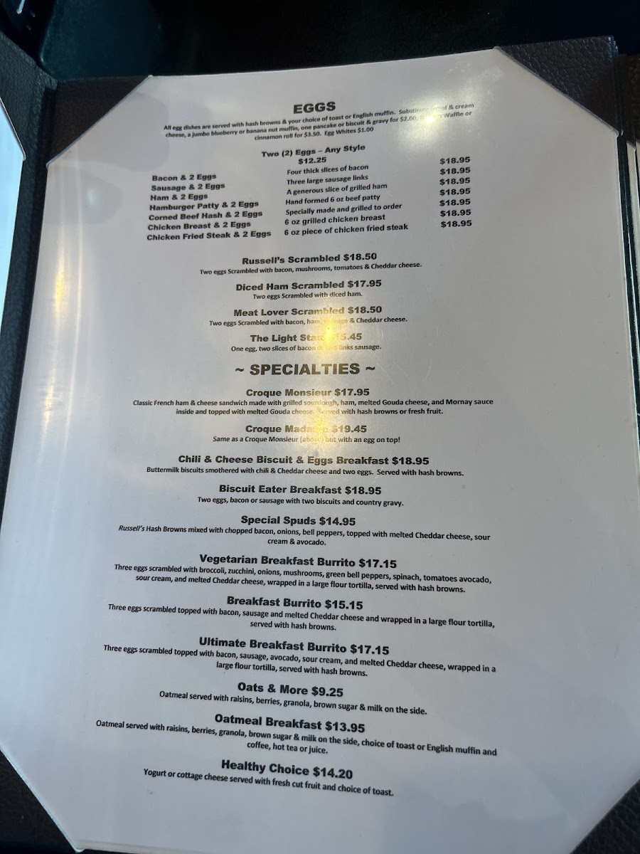 Russell's Menu